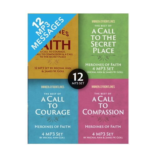 Format: 12 MP3 Downloads This Best of Heroines of Faith 12 Message Set combines the three separate 4 Message Sets of: The Best of a Call to Courage, The Best of A Call to Compassion, and The Best of A Call to the Secret Place. These messages are a complement to the Heroines of Faith book by James & Michal Ann Goll. The Best of a Call to Courage – 4 Message Set – By Michal Ann Goll – (Messages 1-4) Do you want to be courageous? Step out from fear as you listen to these powerful messages from Michal Ann Goll, highlighting testimonies from her own life and simple women of faith throughout the ages who have done great exploits in the name of Jesus. Break free from intimidation and begin to fully obey the call of the Lord upon your life. The Best of A Call to Compassion – 4 Message Set – By Michal Ann & James W. Goll – (Messages 5-8) Discover the power of compassion! Michal Ann teaches how passion for the Lord Jesus moved the lives of William & Catherine Booth and Florence Nightingale to show compassion to those around them. James Goll insightfully shares how compassionate weeping in intercession moves the heart of God. The Best of A Call to the Secret Place – 4 Message Set – By Michal Ann & James W. Goll – (Messages 9-12) Do you want to discover the beauty of the secret place? Michal Ann bares her heart through her research and depth of relationship in God. She highlights the life of Madame Jean Guyon and weaves testimonies from her own life. Her life changing and sincere message, “Up Against the Wall”, came from her observation of how the swallow built a nest for their young in her own barn. James takes you on a journey through the life of Teresa of Avila bringing forth jewels of the secret place. Messages include: Message 1: Women of Courage (Michal Ann Goll) Message 2: Joan of Arc (Michal Ann Goll) Message 3: Annie Get Your Gun (Michal Ann Goll) Message 4: B-29 Bombers (Michal Ann Goll) Message 5: Passion for Him Moves Us to Compassion (Michal Ann Goll) Message 6: The Power of Compassionate Weeping (James W. Goll) Message 7: William & Catherine Booth (Michal Ann Goll) Message 8: Florence Nightingale (Michal Ann Goll) Message 9: The Depths of God (Michal Ann Goll) Message 10: Madame Jean Guyon (Michal Ann Goll) Message 11: Journey into the Castle (James W. Goll) Message 12: Up Against the Wall (Michal Ann Goll)